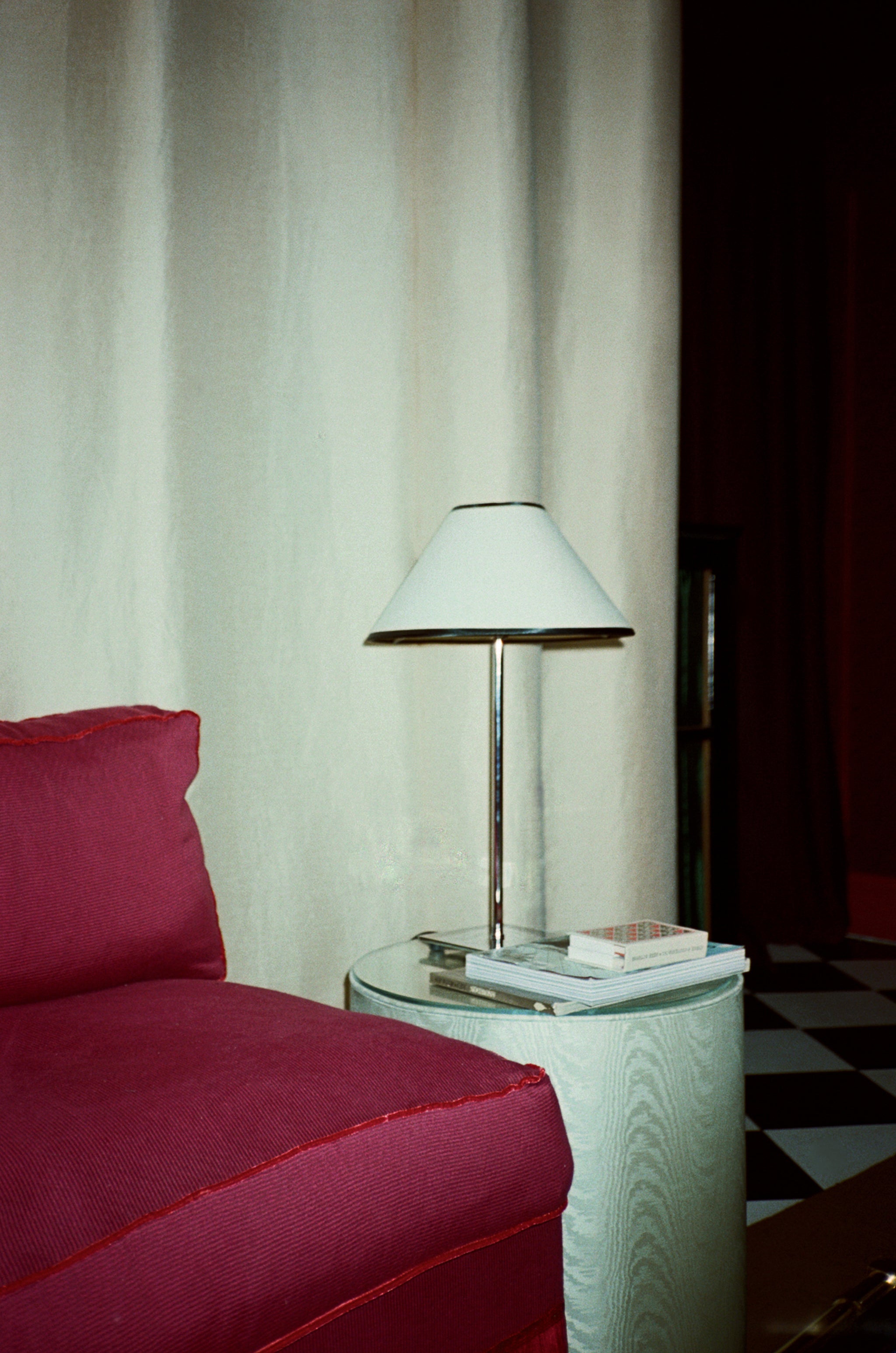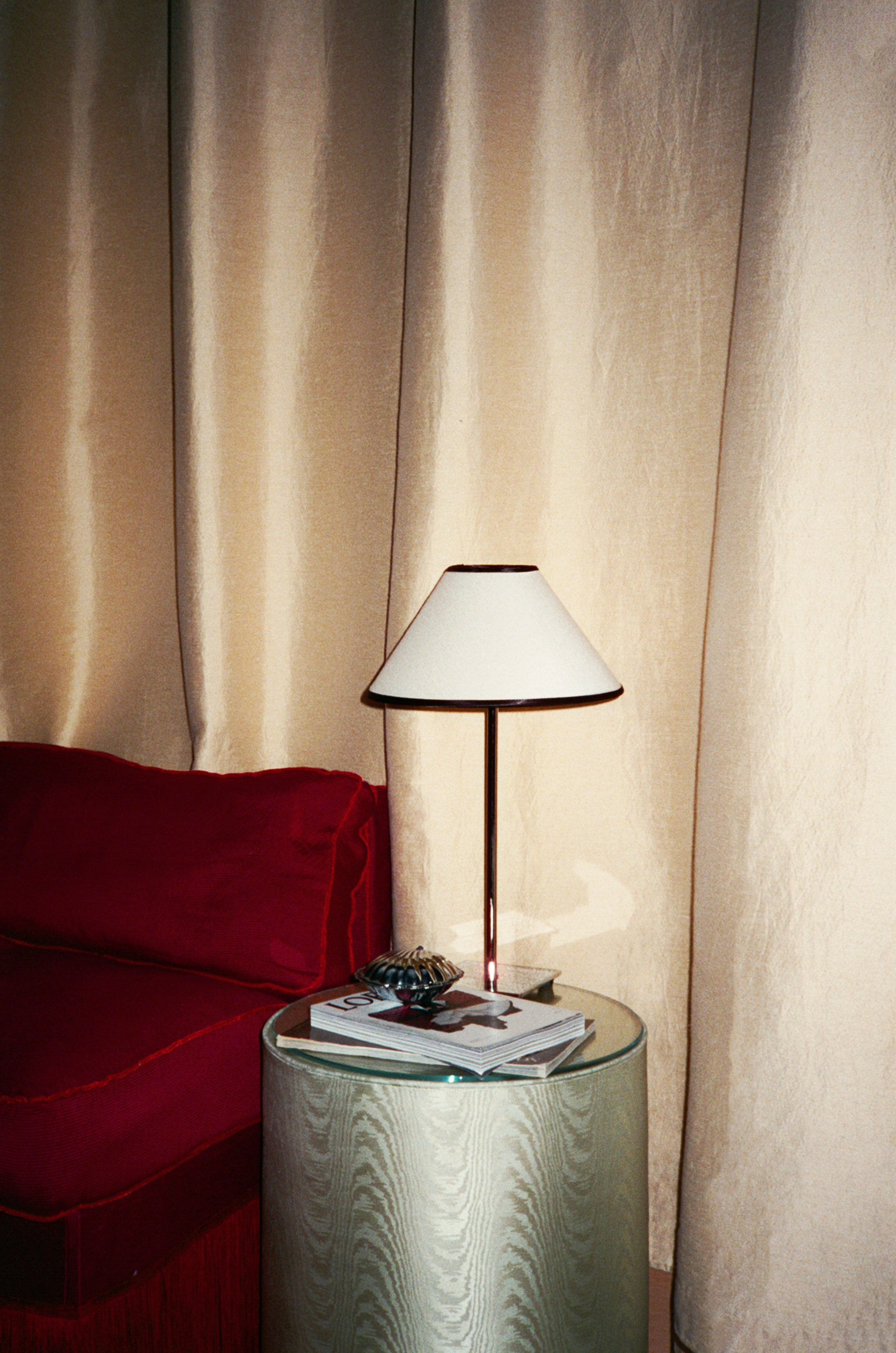 Bastet combines a simple yet striking coolie shape with the decadent sheen of silk sateen and is bound by a black satin edge.
