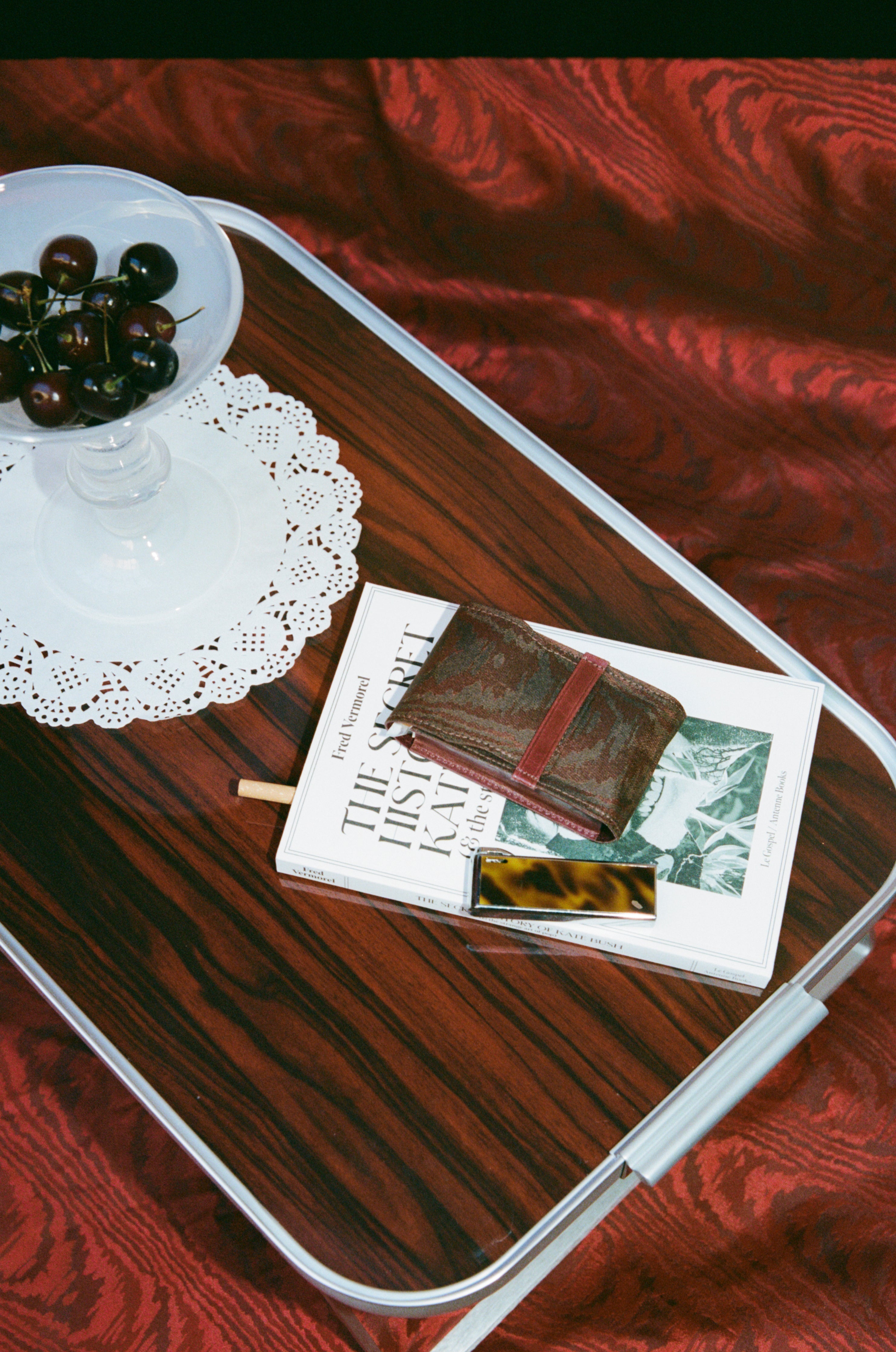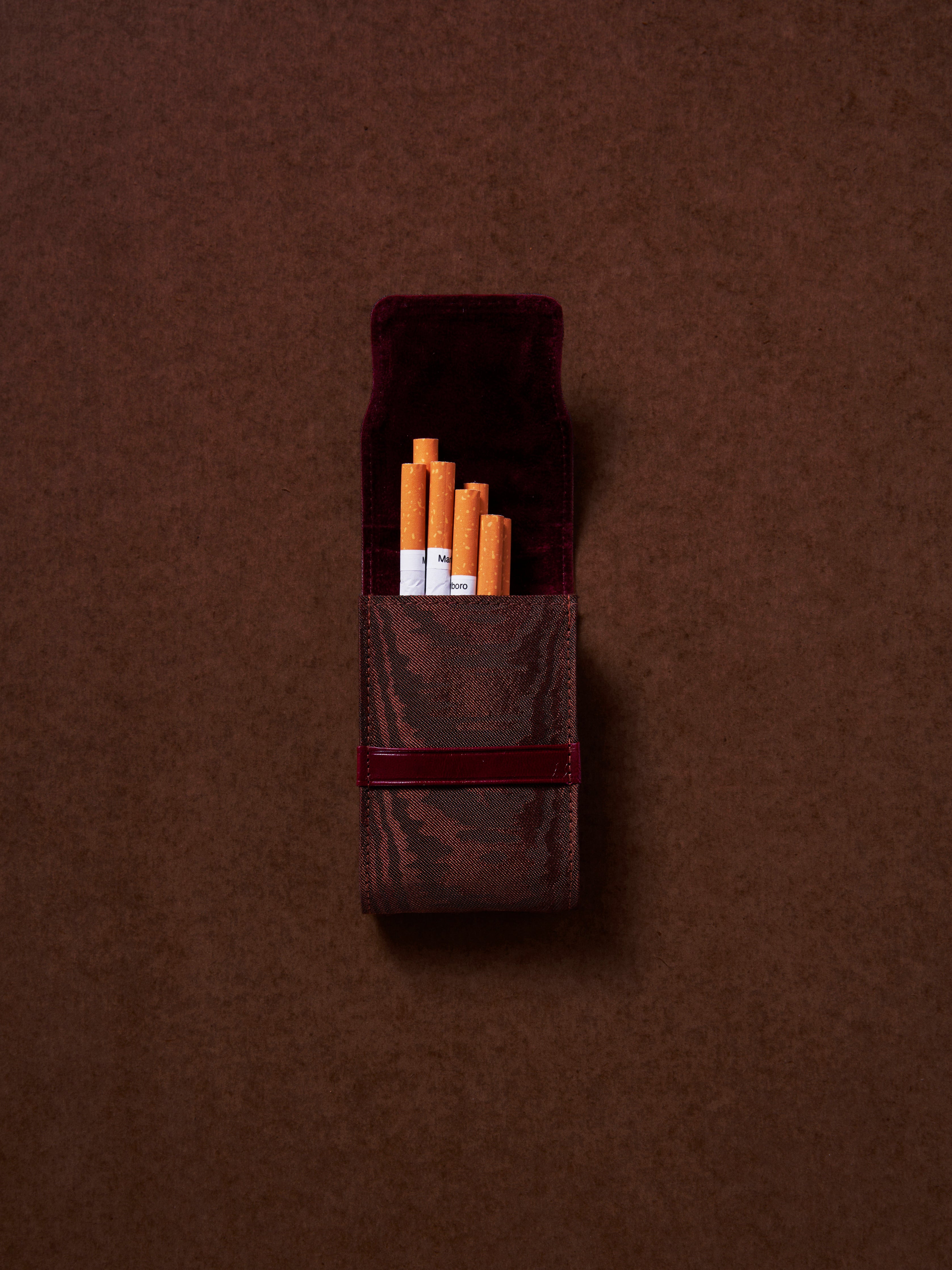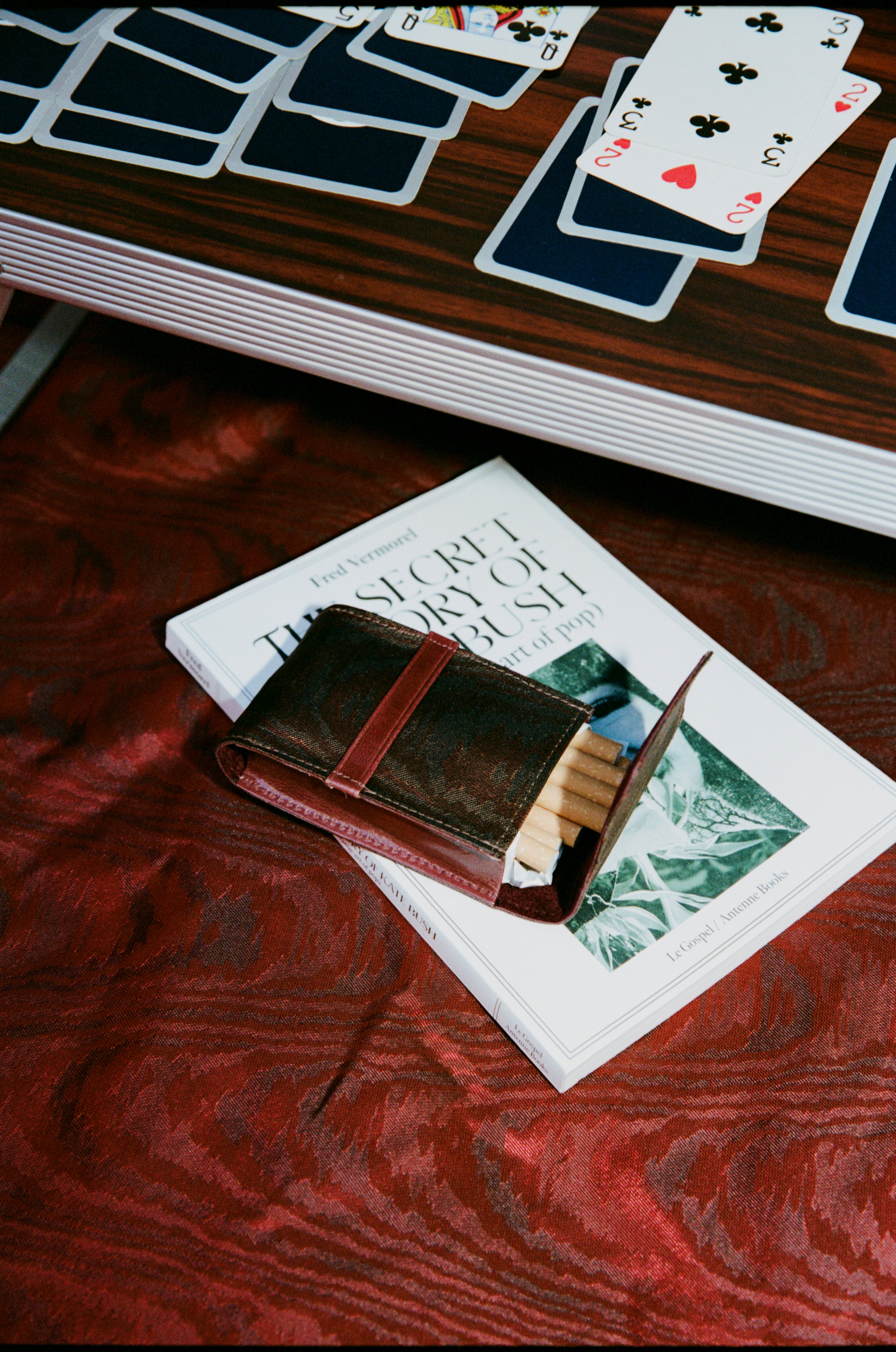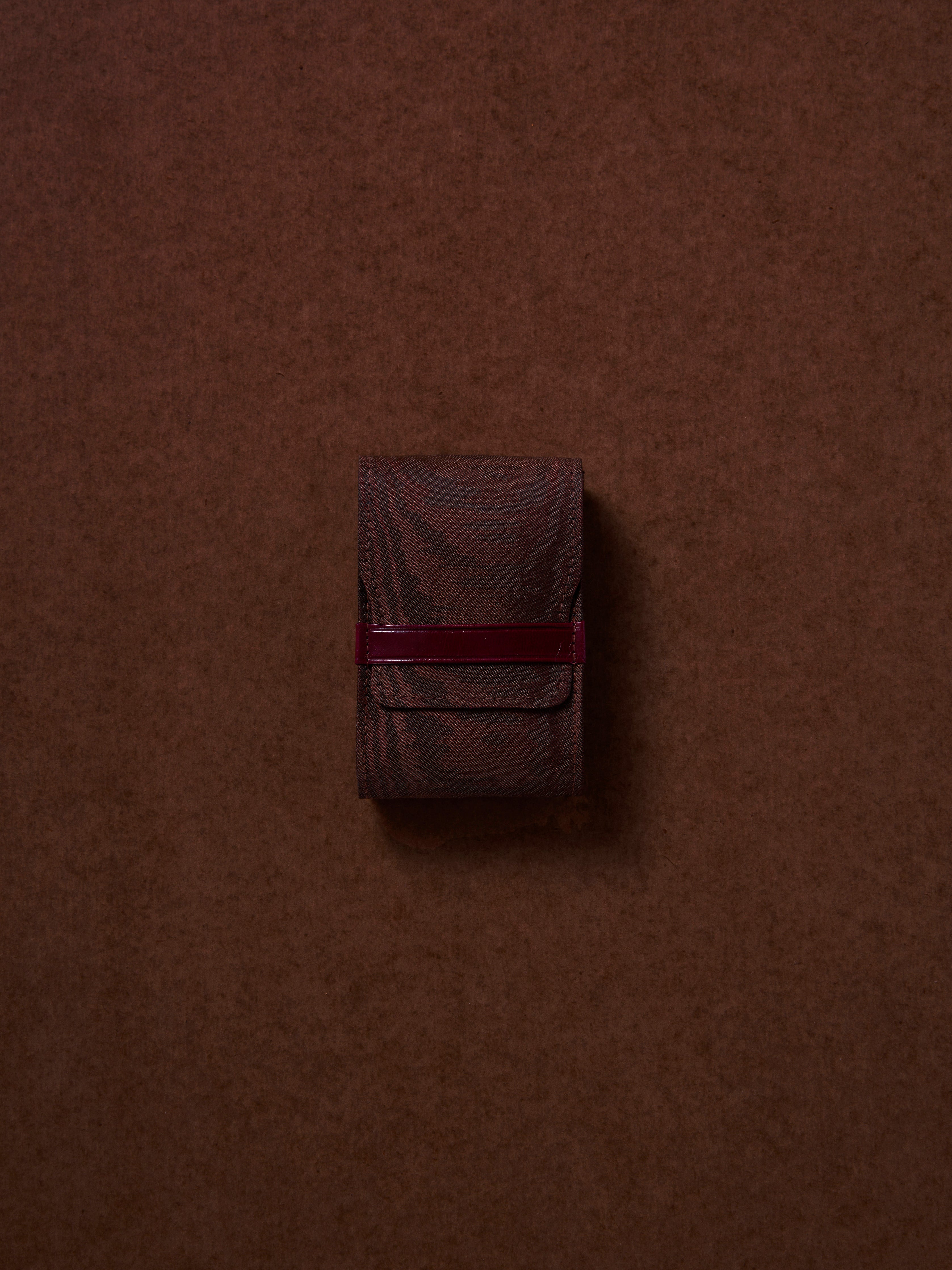 A single deck card sleeve bound in CC's moirè tissè - cosmos, a silk moiré of rare beauty, woven with the finest yarns in one of England's oldest silk mills. Including a set of CC designed playing cards.