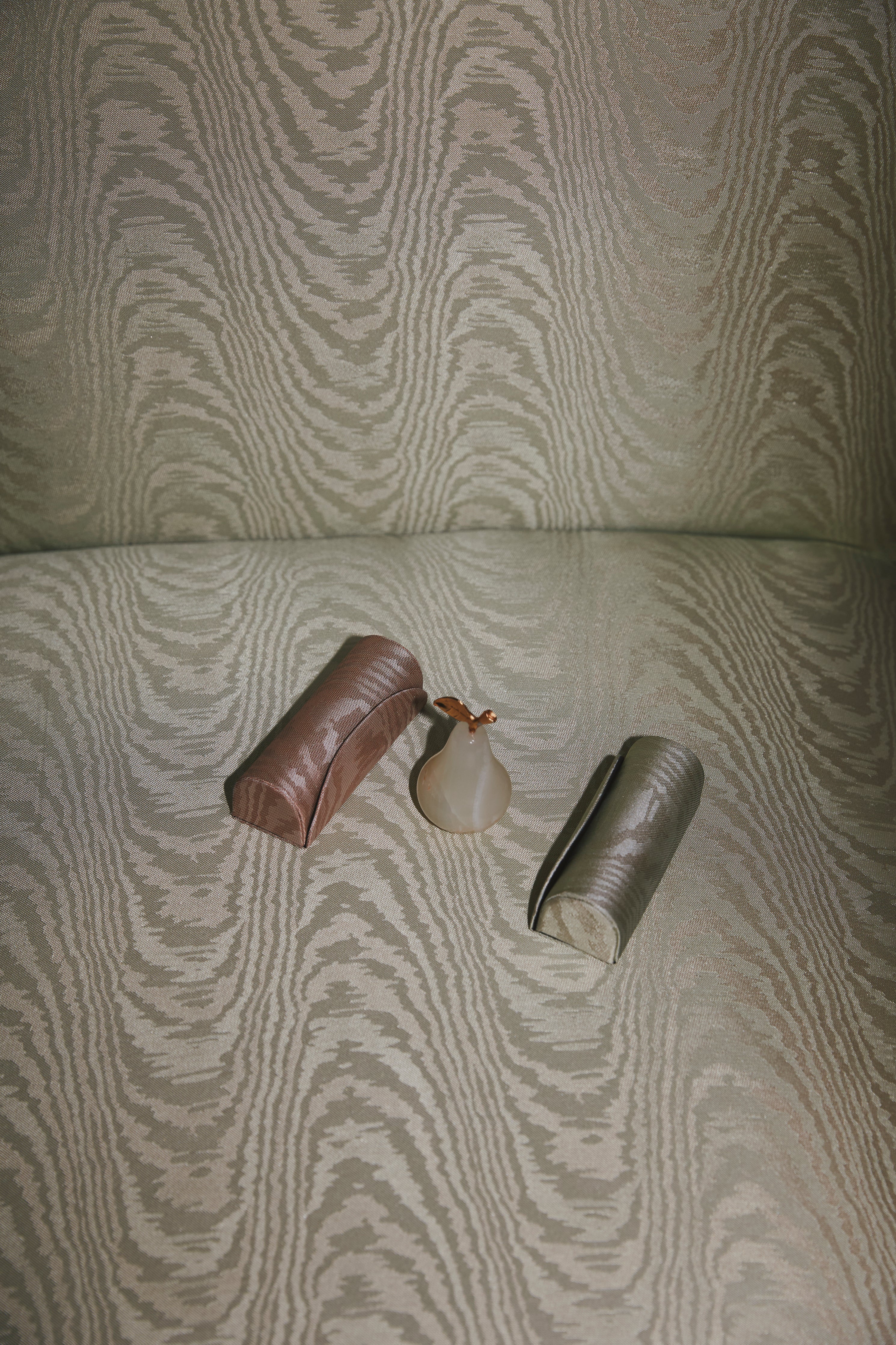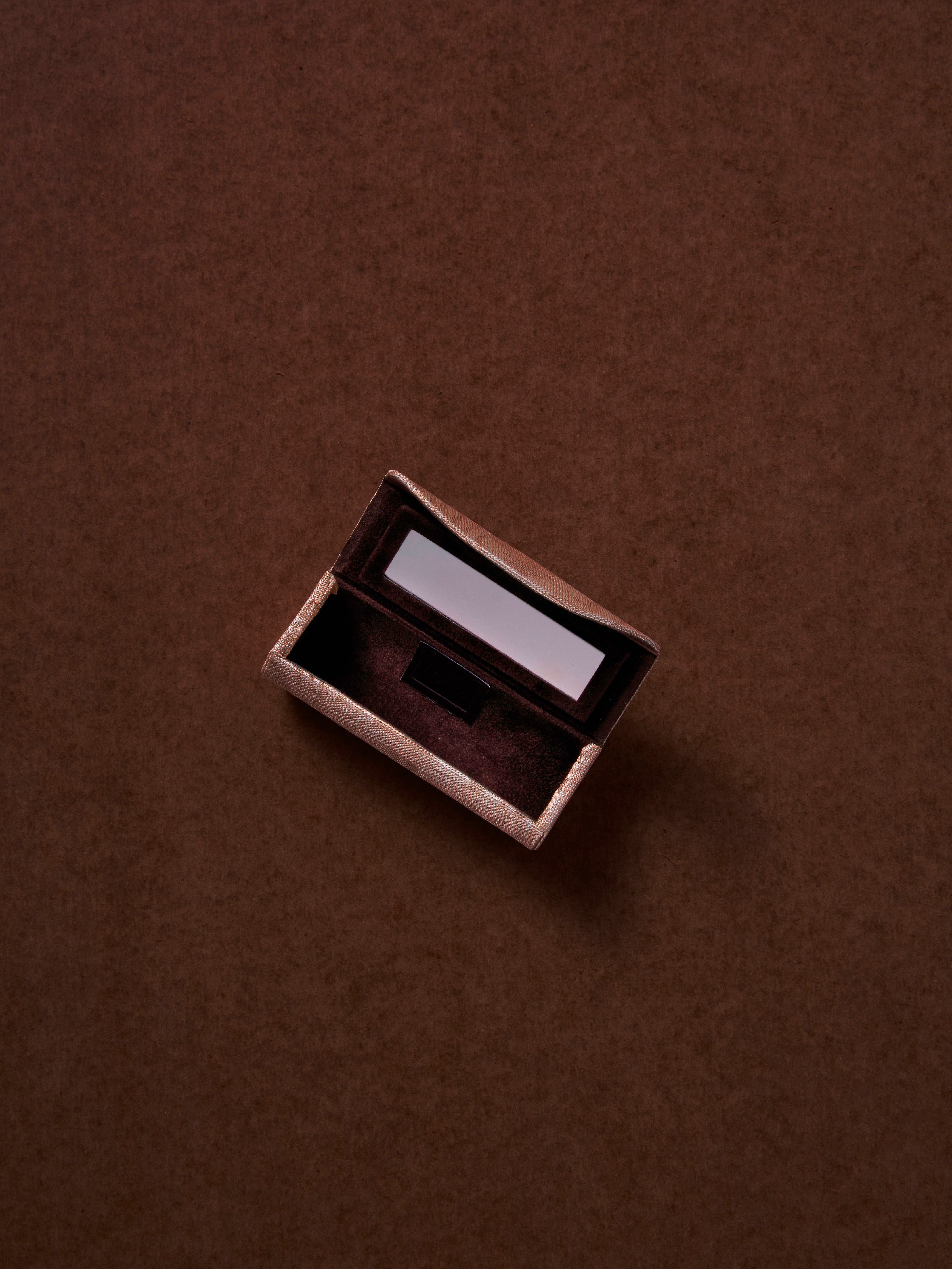 A small ornamental case for carrying essentials and momentos. Bound in CC's Moiré Tissè, a silk woven moiré of rare beauty.